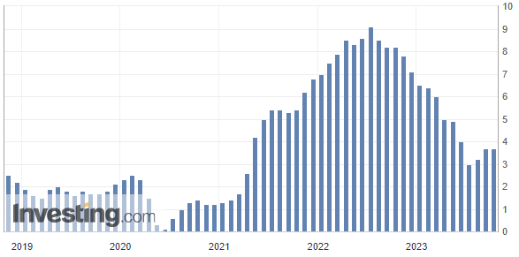 这使得美国9月未季调CPI同比增幅录得3.7%,与8月一致,市场原先预期这一数字会放缓至3.6%。