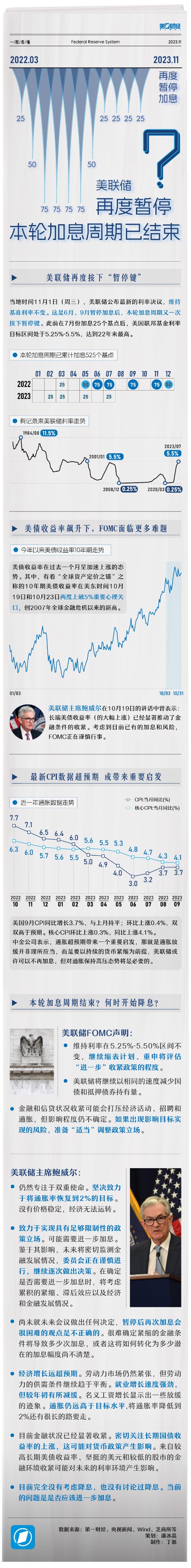 XM外汇:一图看懂:美联储加息脚步二连停 本轮加息周期已结束?