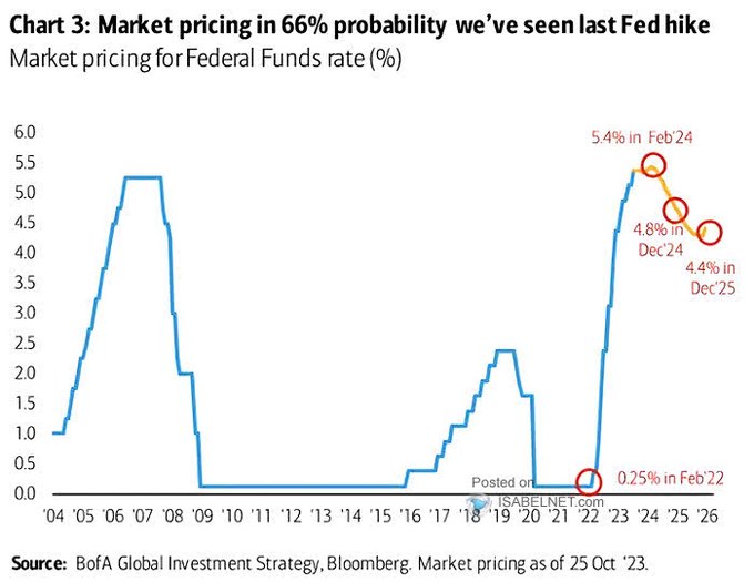 第二件事则是美国经济数据的持续火热——“代表作”是美国第三季度GDP折合成年率的增幅超预期攀升到了4.9%。火爆依旧的经济活力,加之地缘冲突引发的油价大涨,在一定程度上加剧了业内对于若不收紧政策,通胀就不会持续放缓的担忧。