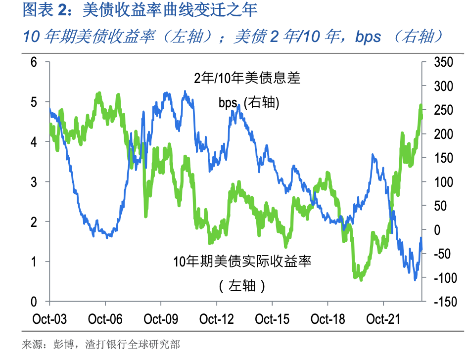 “我们认为2024年这两个问题的重要性将盖过所有其他主题,除非发生地缘政治或金融市场震荡。金融条件的变化也主导着2023年的市场行情。”罗伯逊称。