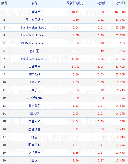 领涨中概股列表: