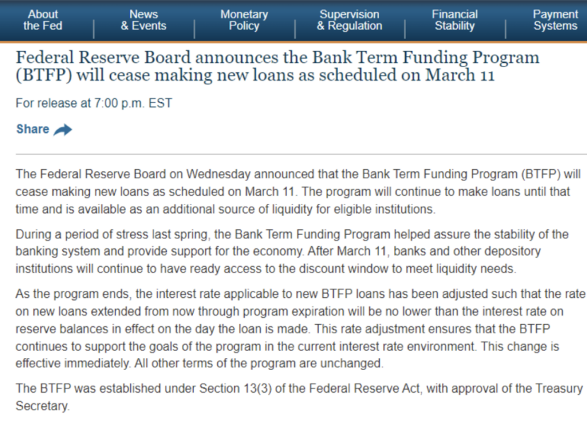 美联储在新闻稿中称,在2023年春季的紧张时期,银行定期融资计划帮助确保了银行系统的稳定,并为经济提供了支持。2024年3月11日之后,银行和其他存款机构将可以利用贴现窗口来满足流动性需求。