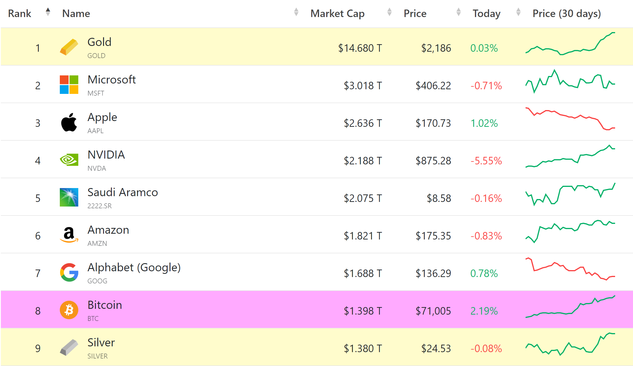 3月11日,比特币站上71000美元/枚,日内涨超2%,续创新高。据companiesmarketcap统计,比特币市值已升至1.398万亿美元,超越白银(1.380万亿美元),成为全球市值第八大资产。