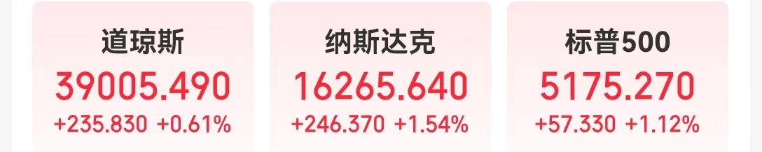 当地时间3月13日,美股高开高走,三大指数集体收涨。纳指涨1.54%,标普500指数涨1.12%,道指涨0.61%。