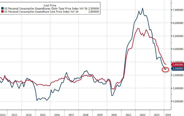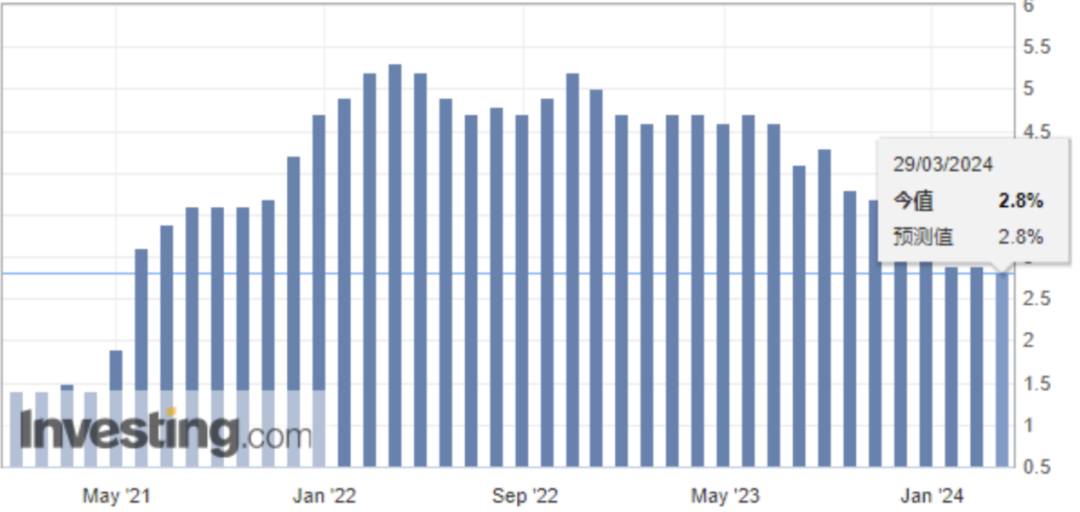其中,2.8%的年率为2021年4月以来的最低水平,但距离美联储2%的通胀目标仍有一定差距。