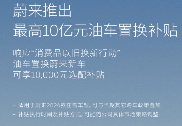 蔚来推出最高10亿元油车置换补贴。
