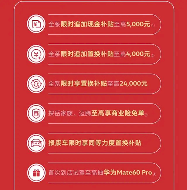 一汽-大众全系限时追加现金补贴至高5000元。