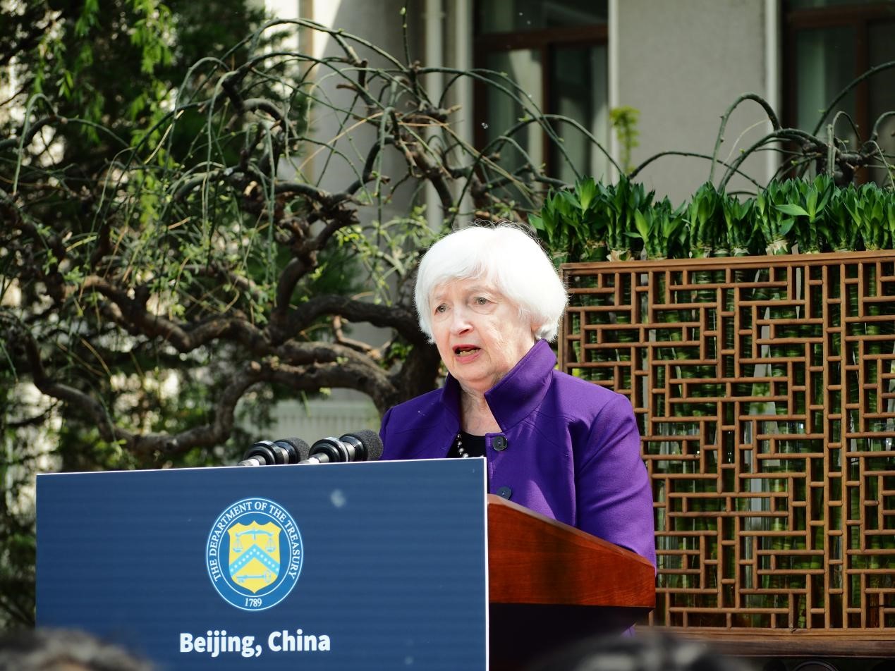 4月8日,美国财政部长耶伦在即将结束六天访华行程之际,在美国驻华大使官邸举行新闻发布会。