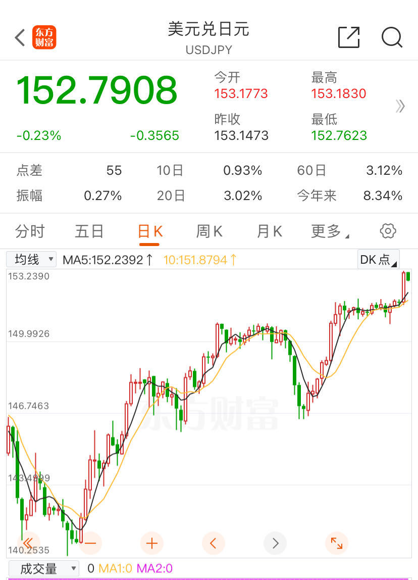 他还表示,将与七国集团(G7)合作应对汇率问题,并指出G7曾表示日元汇率的无序波动可能会对全球经济产生负面影响。此前,日本财务大臣铃木俊一也公开警告将采取“坚决行动”干预汇市。