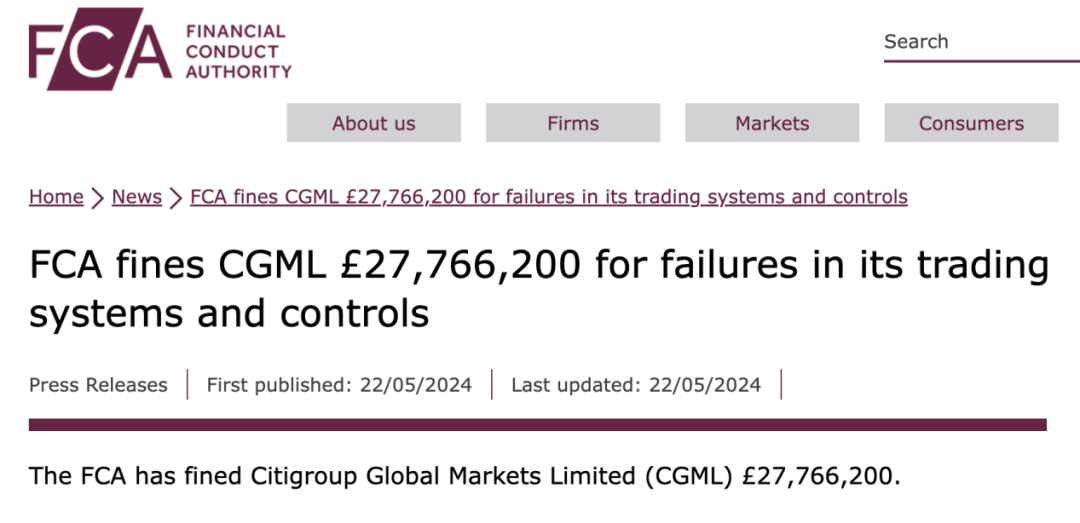 英国金融行为监管局和审慎监理局迅速介入,最终发现花旗集团的交易控制存在严重缺陷,包括“缺乏某些预防性硬措施”和“其他控制措施的不当校准”,未能及时发现并阻止错误交易的发生。最终,英国金融行为监管局对花旗集团处以约2777万英镑的罚款,而英国审慎监管局则对其处以3388万英镑的罚款。